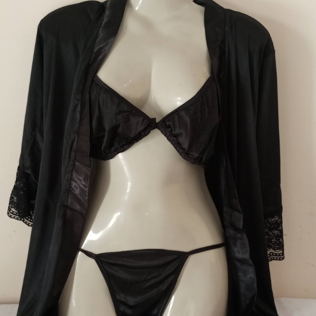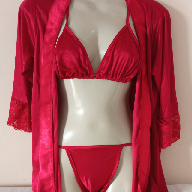 CURVY STRINGS - 3 Piece Sexy Lingerie with Gown | Dukan.pk